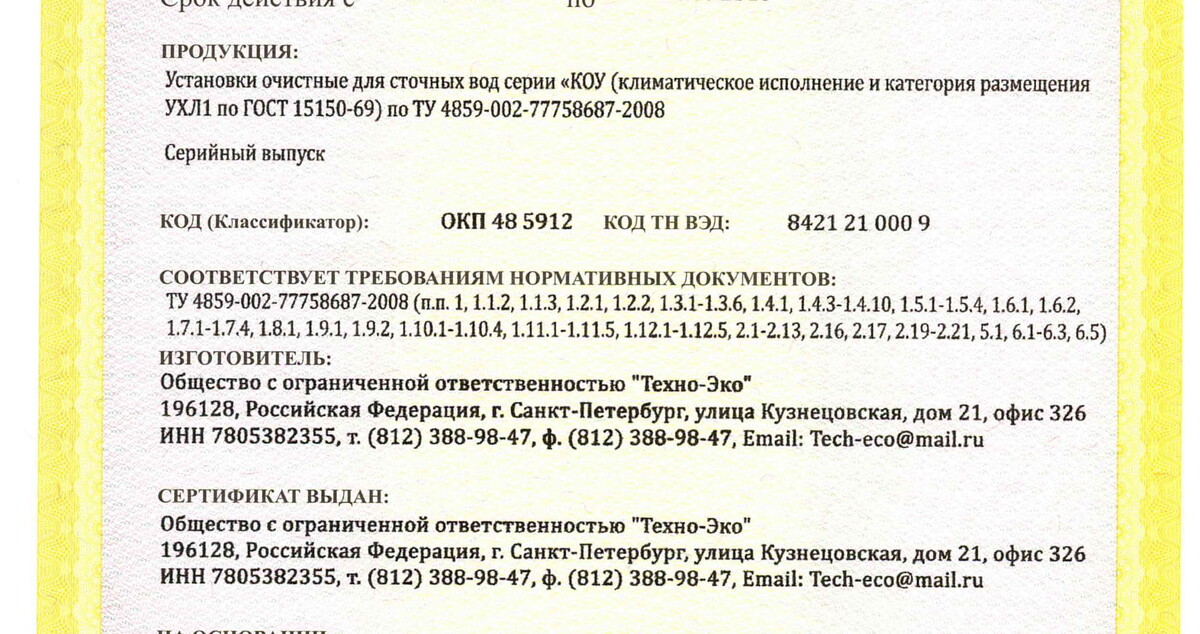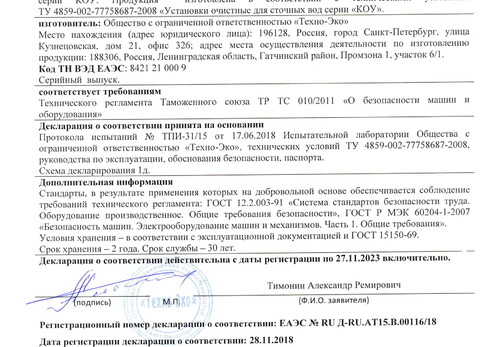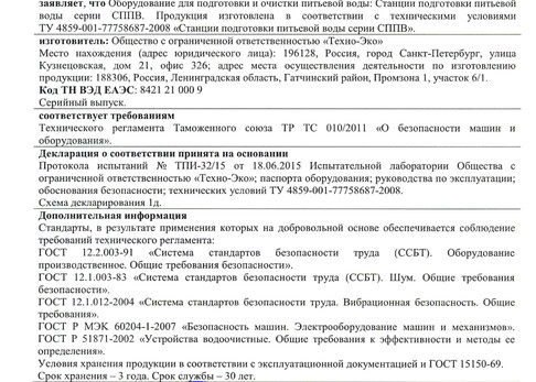 Оборудование в зависимости от производительности поставляется как в блочно-модульном (контейнерном) исполнении, так и в быстровозводимых зданиях. В комплектацию оборудования входят все необходимые инженерные системы, обеспечивающие его эксплуатацию без постоянного присутствия оператора. Каждая водоочистная установка является уникальной для заказчика, поскольку при проектировании, изготовлении и наладке наши специалисты учитывают качество воды, предназначенной для обработки и требования к готовому продукту. Все наши водоочистные станции, канализационные очистные станции, насосные станции и входящее в их состав оборудование сертифицировано Госстандартом России. Мы предоставляем гарантийное обслуживание, постгарантийное обслуживание и авторское сопровождение.